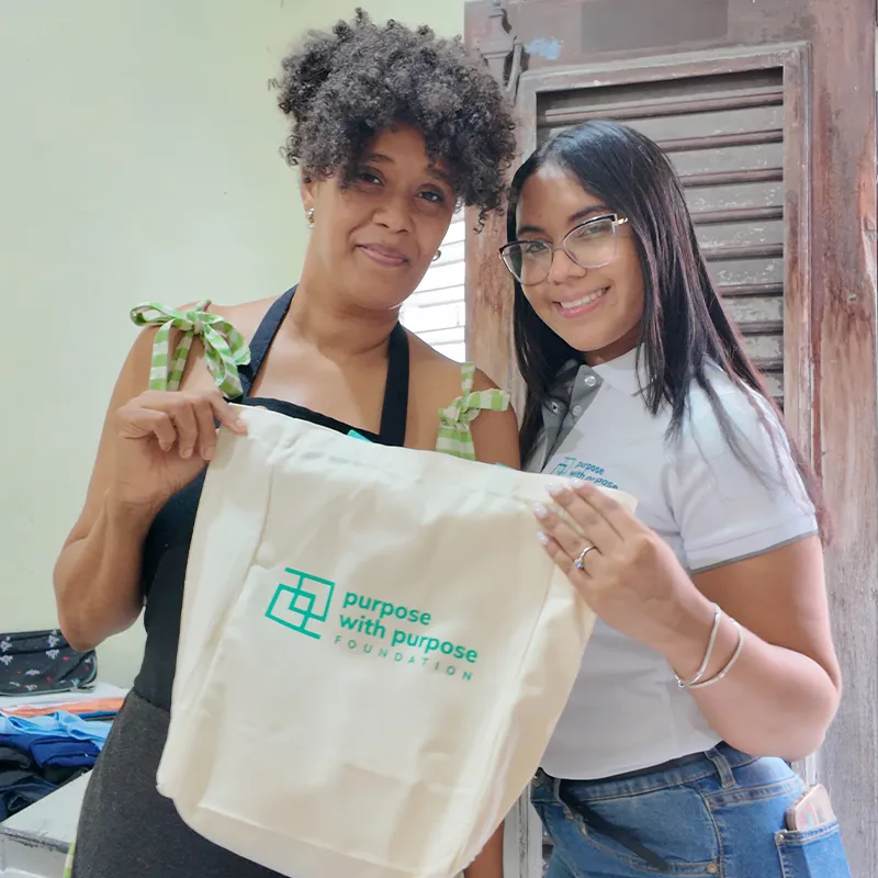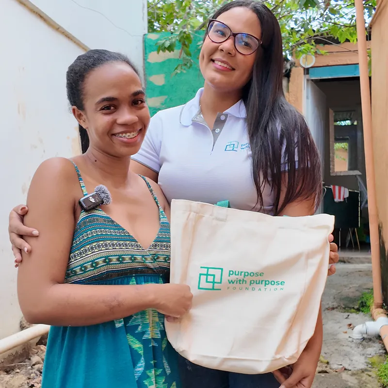 Purpose With Purpose le colabora con la creación de su identidad visual para elevar los estándares de su marca, al mismo tiempo se le hacen aportes económicos para la adquisición de materia prima.
