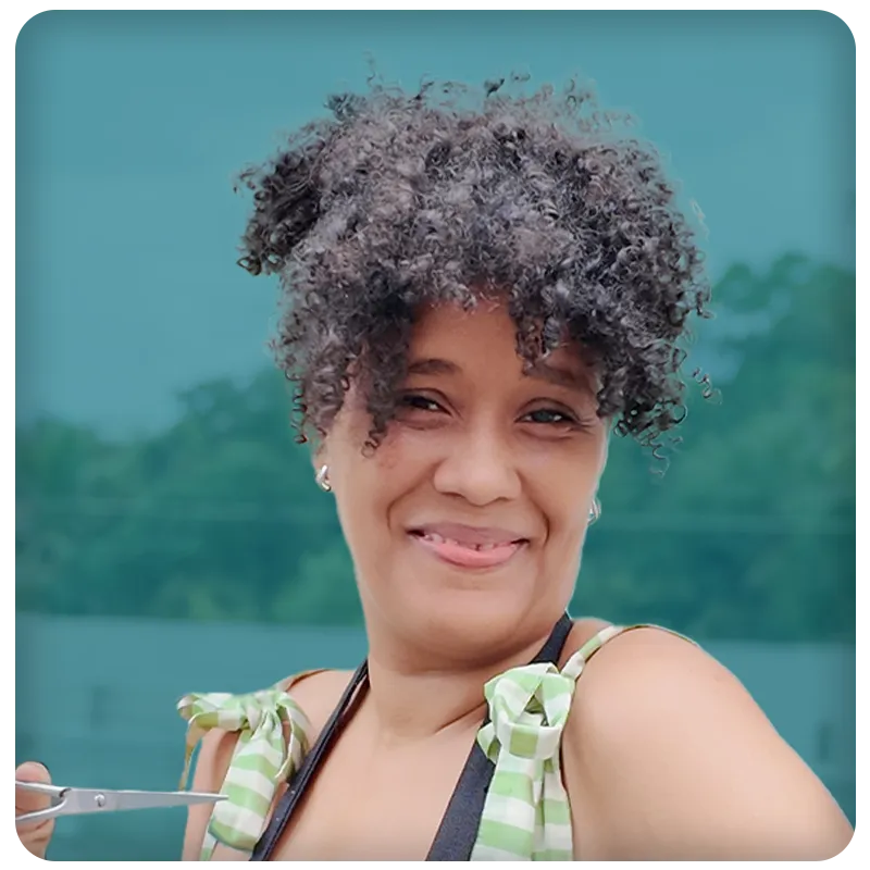 América es una mujer de gran energía y carisma, cuyo emprendimiento comenzó en 2016 gracias a los elogios por su cabello natural. Esa admiración la motivó a estudiar barbería y a desarrollar su propio salón móvil, un concepto innovador que le permite ofrecer servicios de belleza a domicilio.