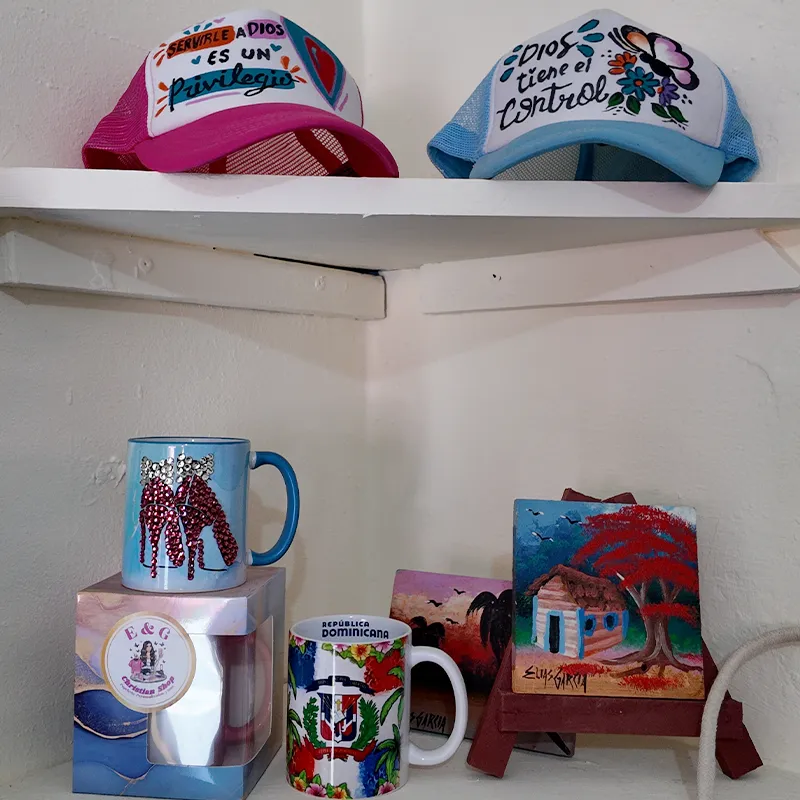 Elizabeth es una maestra talentosa que encontró en la pandemia la oportunidad de redescubrir su arte. Inspirada por un consejo recibido años atrás, comenzó a ver tutoriales en YouTube y a crear camisetas personalizadas desde su casa. Con el tiempo, invirtió en una impresora y abrió su propio local, donde ofrece una amplia gama de productos personalizados: biblias decoradas, mochilas, bolsos pintados por su esposo y artículos que hoy llegan incluso a turistas y al extranjero.