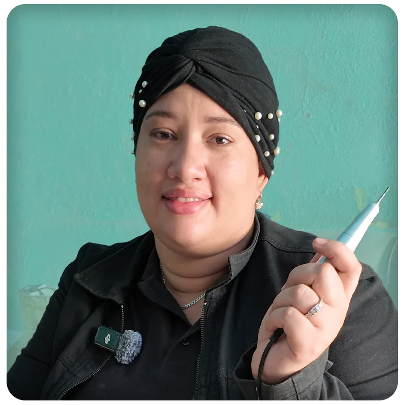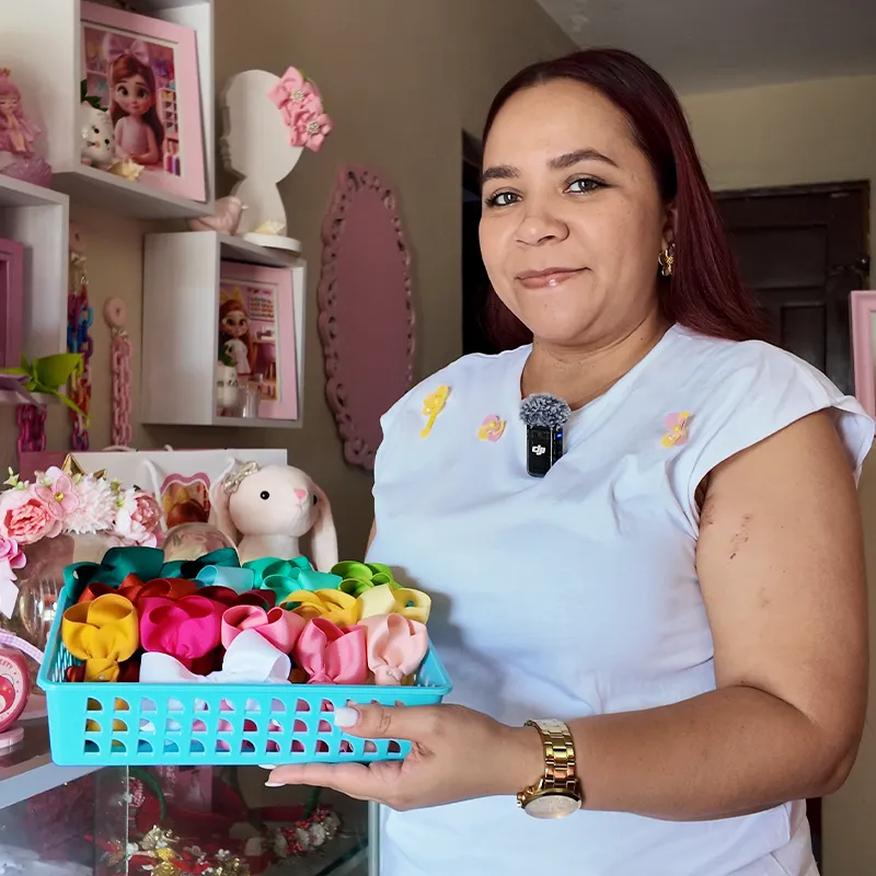 Con esfuerzo y dedicación, América se desplaza en bicicleta o en motor para atender a sus clientas, demostrando su compromiso y pasión. Su mayor reto ha sido fidelizar clientes, pero su talento y su presencia en la zona colonial le han permitido crecer y consolidarse. A través del marketing boca a boca, ha construido una clientela fiel que confía en su experiencia. Purpose With Purpose la acompaña en su proceso de expansión, ayudándola a fortalecer su negocio y cumplir su sueño de tener un salón físico propio.